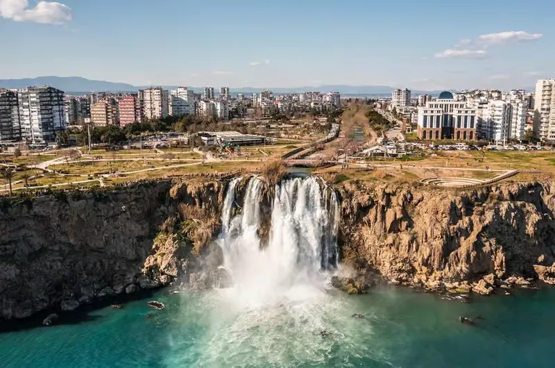 Upper Düden Waterfall is one of the most beautiful natural attractions in Antalya. Located about 10 km from the city center, this impressive waterfall is surrounded by a peaceful green park, making it a perfect escape from the city.